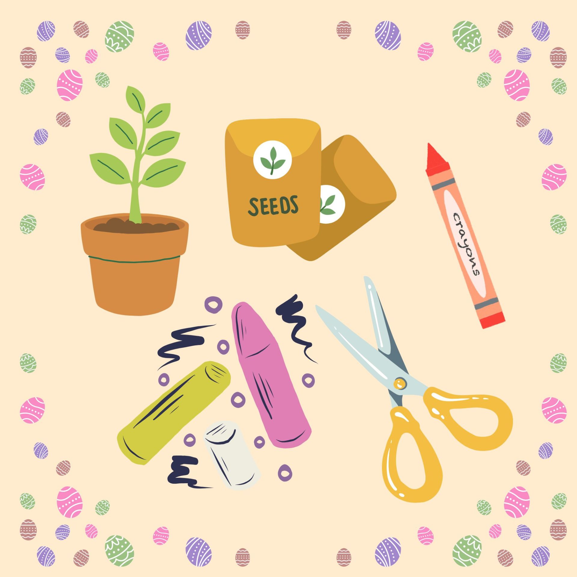 Galw heibio crefftau Pasg a hadael hadau
