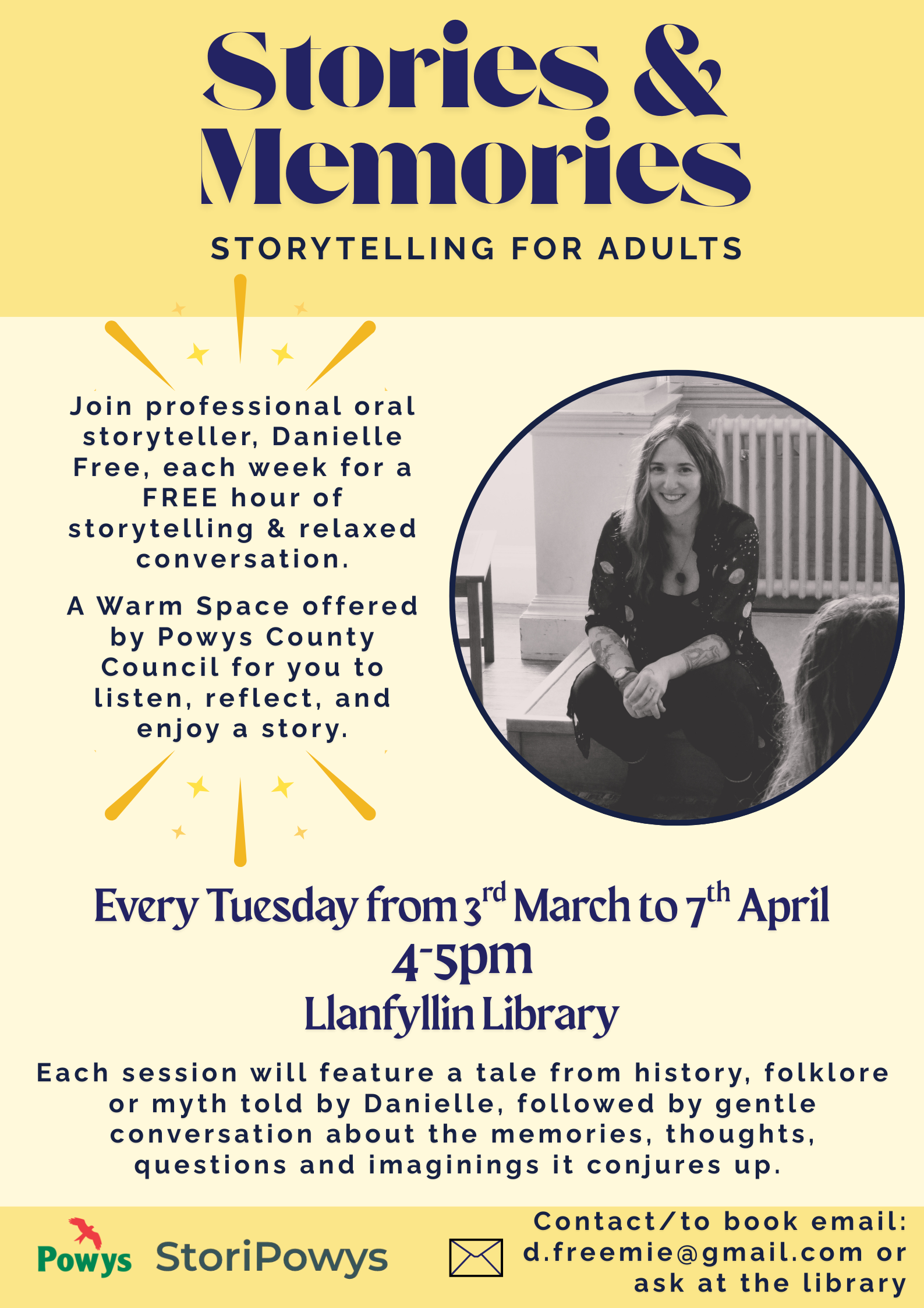 Join professional oral storyteller, Danielle Free, each week for a FREE hour of storytelling & relaxed conversation.